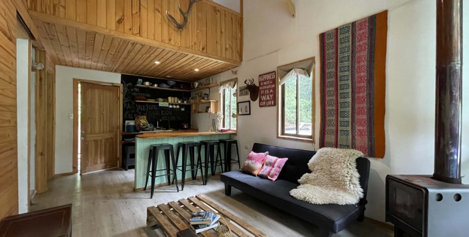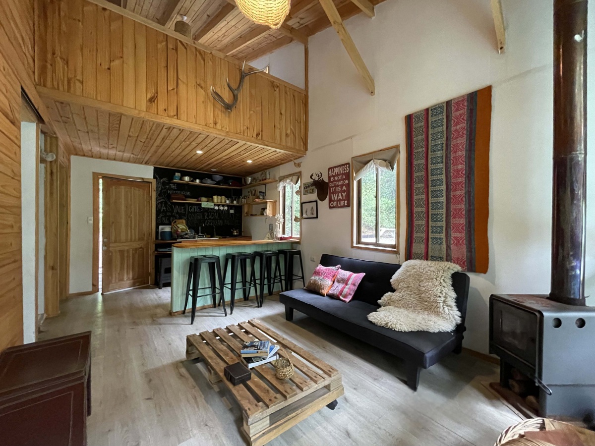Se vende linda casa tipo Refugio Cordillano, amoblada y equipada en espectacular parcela de 5.000 m2 rodeada de bosques añosos de Coigues, Robles, Arrayanes, etc, ubicado en Parque Nacional Radal 7 tazas, a 1.5 km de Río Claro y 1.4 km de camino público pavimentado.
