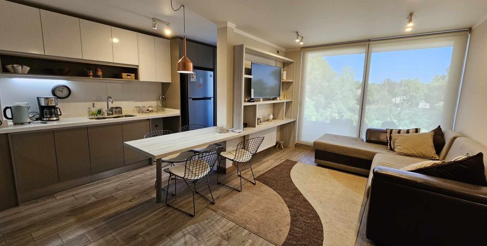 Departamento en 2° piso, de 73 m2 full amoblado y equipado con todo para instalarse de inmediato.